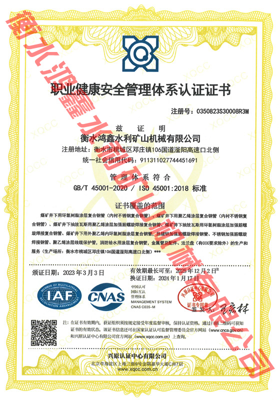 職業(yè)健康安全管理體系認證證書