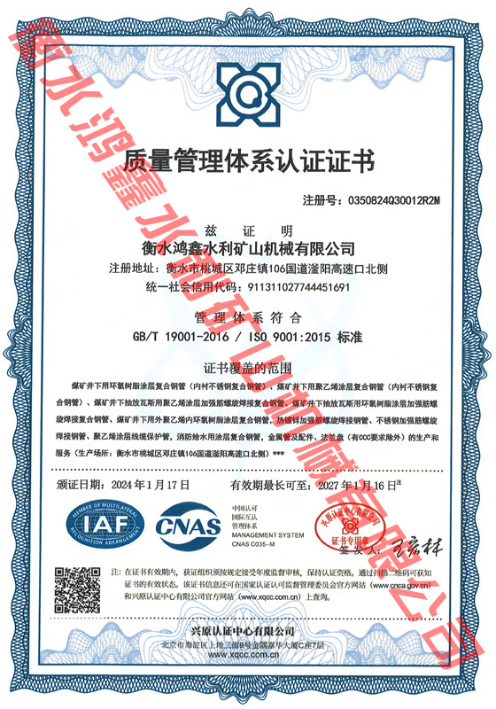 質(zhì)量管理體系認證證書