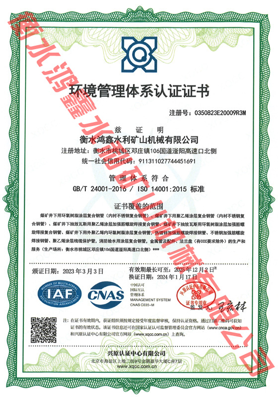 環(huán)境管理體系認證證書