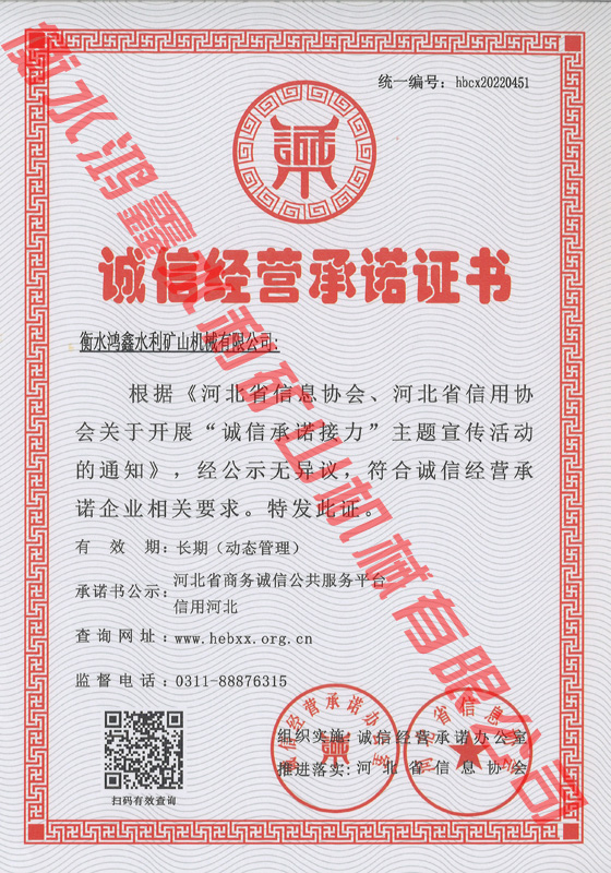 誠信經(jīng)營承諾證書